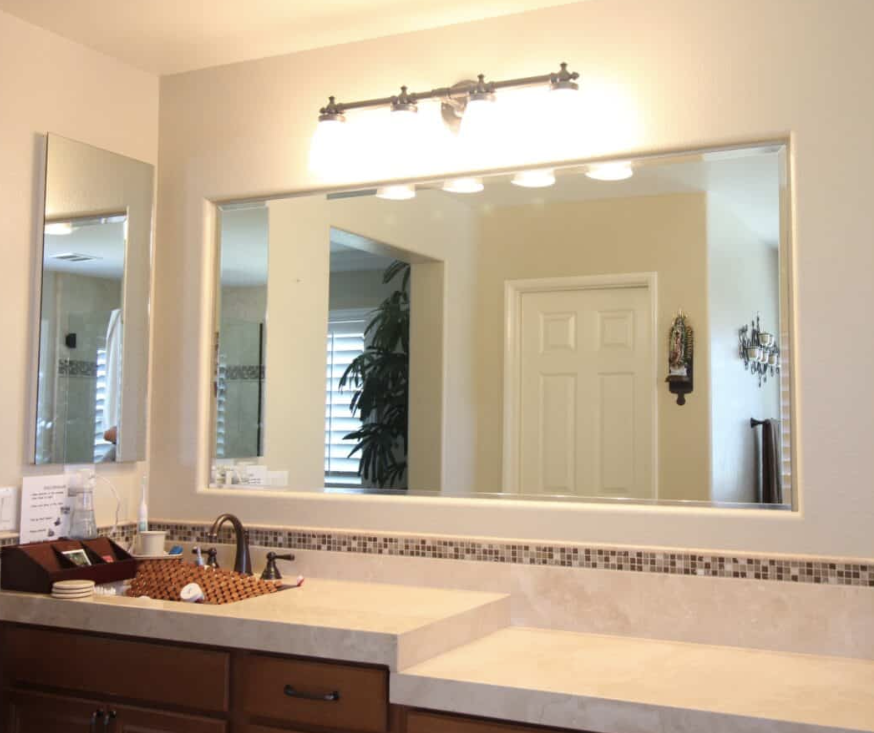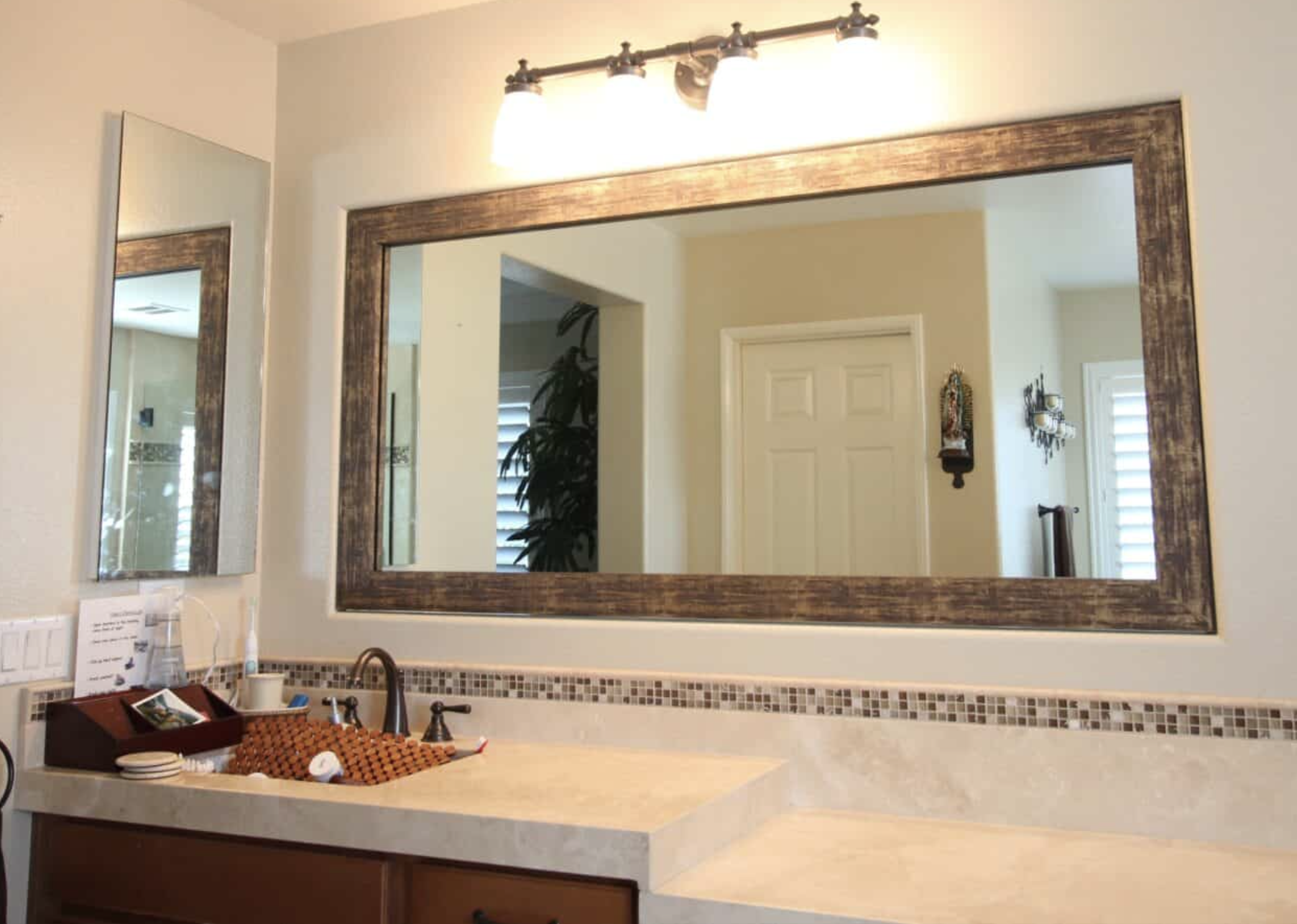 Our experts deliver and install custom-fit frames that dramatically enhance your unfinished builder-grade mirrors.